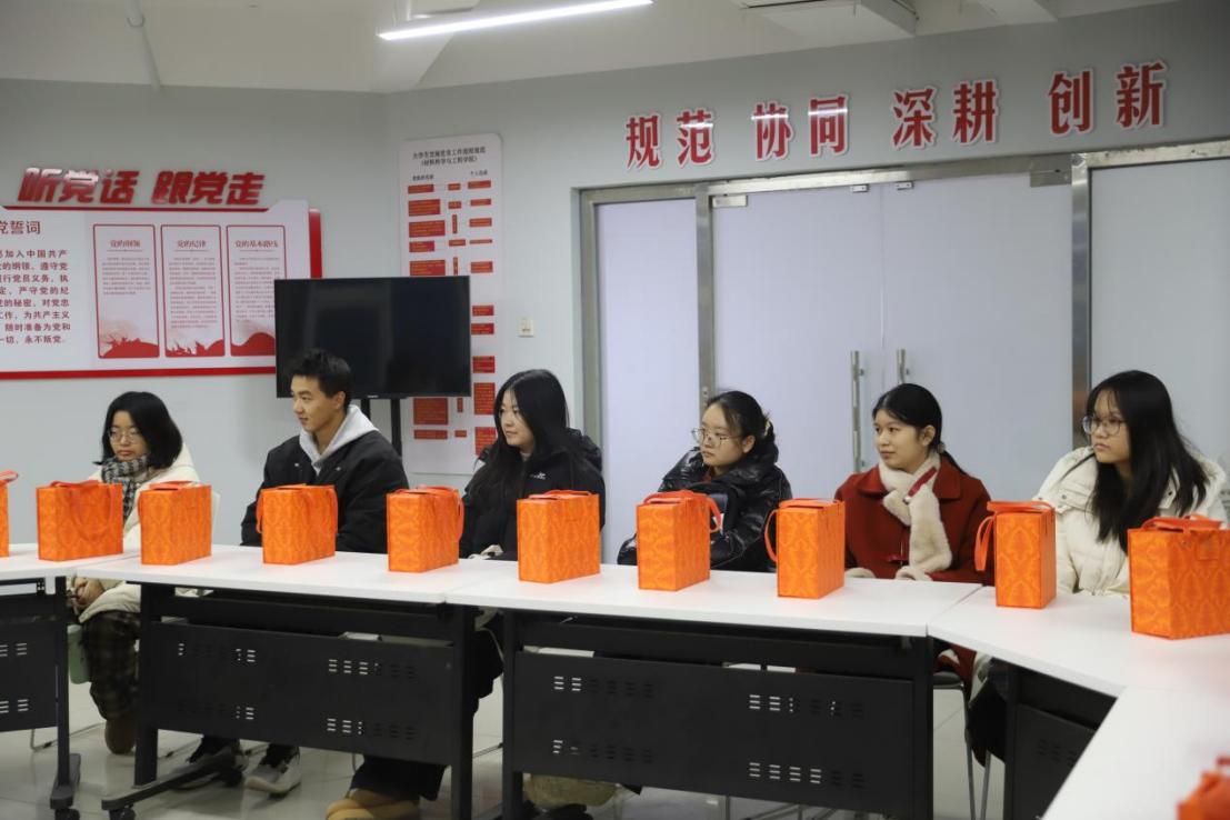 随后,同学们围坐一堂,交流复习心得与备考策略,在彼此的鼓励中凝聚冲刺力量,现场互动氛围轻松融洽。学院还暖心地准备了考研小礼物,将深切关怀与美好期许传递给备考学子们。